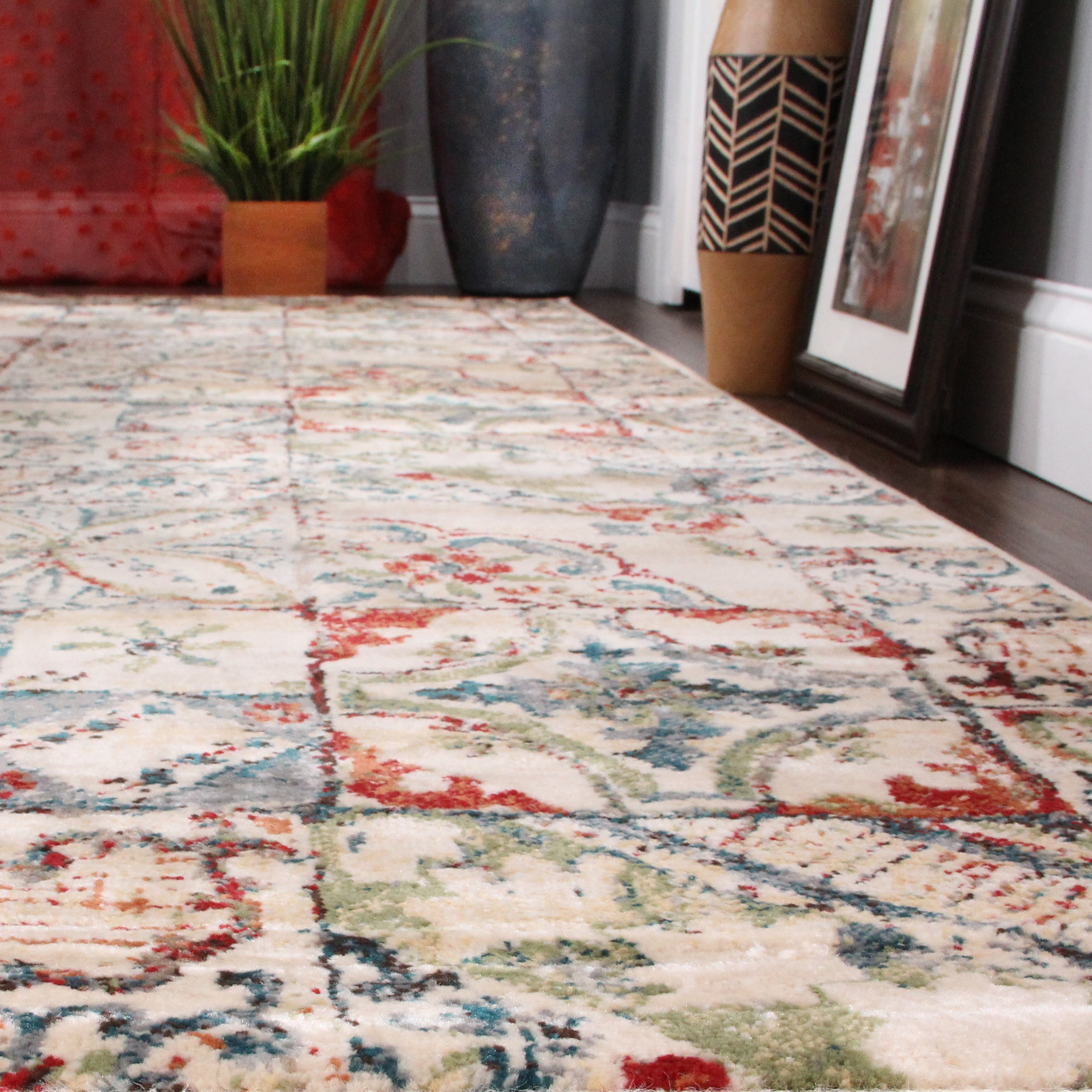 Stratton Victorian Floral Vines Lattice Indoor Area Rug