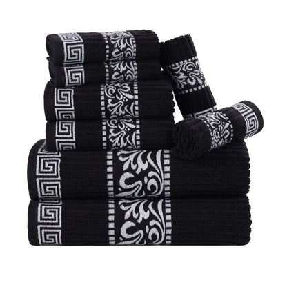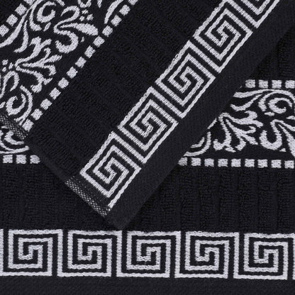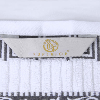 Pamper yourself with our Athens Cotton 8 Piece Assorted Towel Set. These decorative towels feature a Greek key and scroll pattern, perfect for adding a chic touch to your bathroom that will elevate your home. The luxurious bundle comes with two bath towels, two hand towels, and four face towels/ washcloths and pairs perfectly with any traditional, modern, or transitional decor styles. Well-made with plush, ring-spun cotton and a loop for easy hanging on each piece, this versatile towel set can withstand many washes while being incredibly soft on your skin.