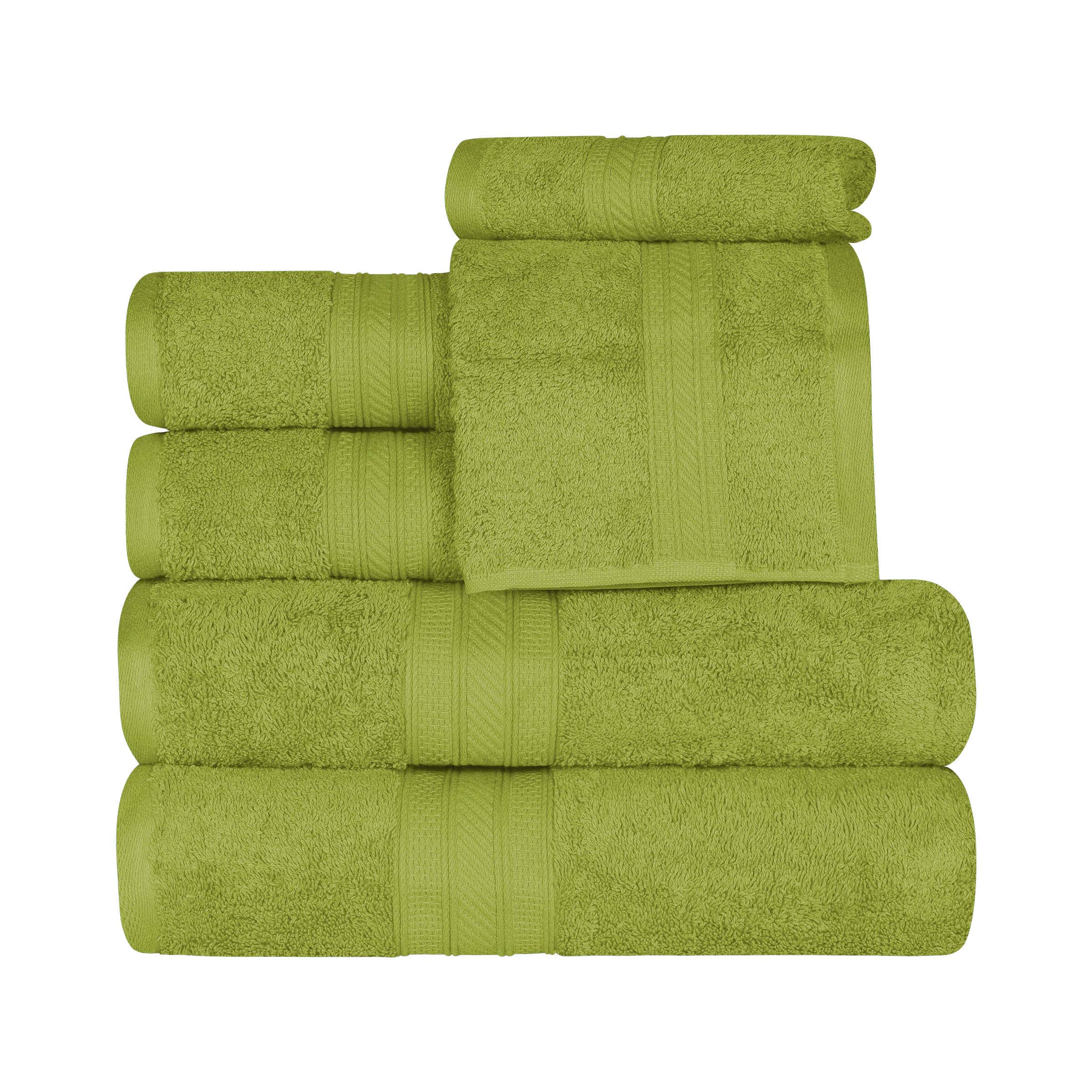 Experience the luxurious feel of this 6-Piece Cotton Towel Set. These sumptuous towels provide a quick and sophisticated update to any bathroom or shower space. Crafted with quality, Cotton, these towels are just as long-lasting and durable as they are stylish. This charming set includes two-bath towel, two-hand towel, and two-face/washcloth in an assortment of solid colors. Featuring crisp, hemmed edges and a detailed border, this gorgeous set is sure to elevate the beauty of your bathroom and give you a look you'll love.