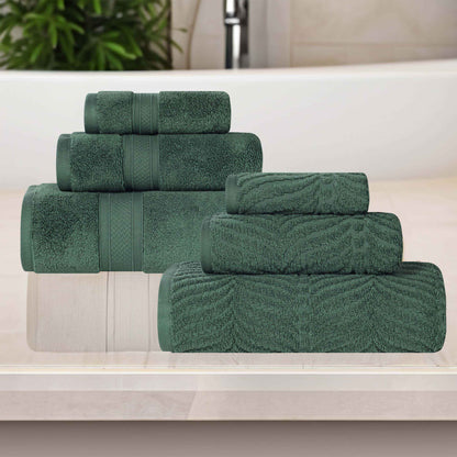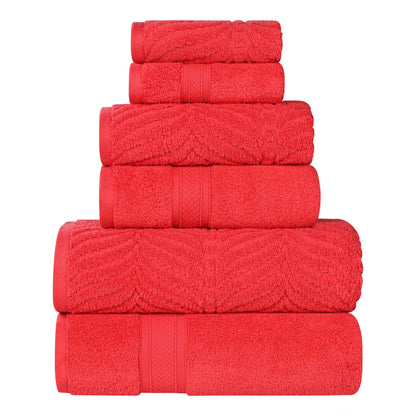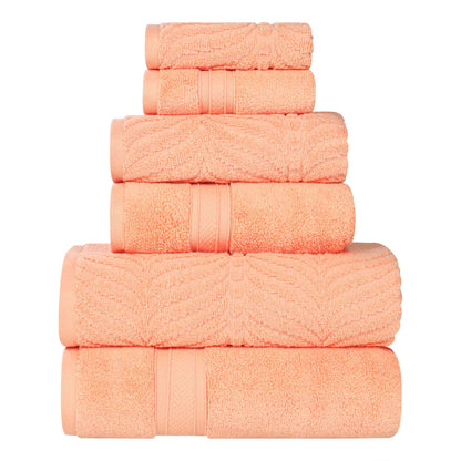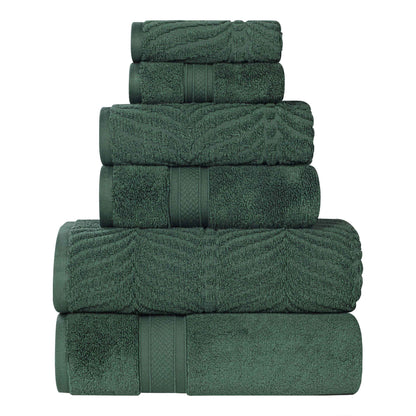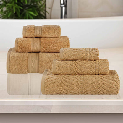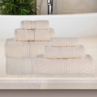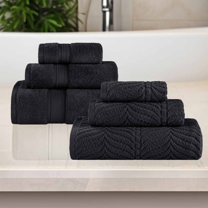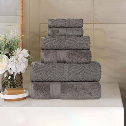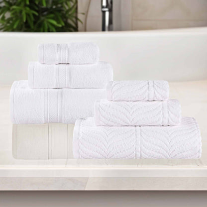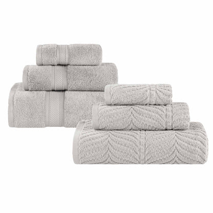 Zero Twist Cotton Solid and Jacquard Elegant Chevron 6 Piece Towel Set