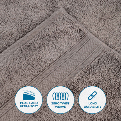 - Additional Features: Each towel boasts impressive absorbency and a soft textured luxurious feel. Zero twist weave is lint-free, plush, ultra-soft, and highly-absorbent to get you dry quickly. Single-ply thickness for added comfort and durability. Attached hanging loop allows you to easily hang your towel.
