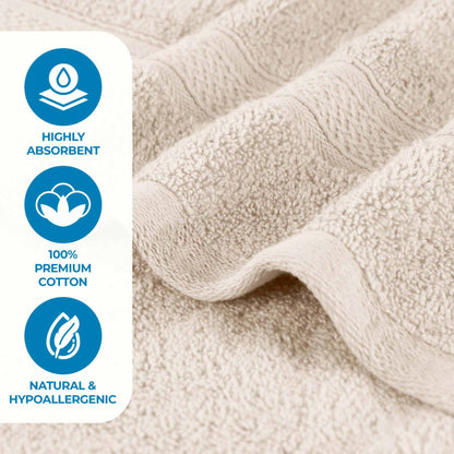 Experience unmatched softness and absorbency with the Zero Twist Cotton Solid and Jacquard Elegant Chevron Soft Absorbent 6-Piece Assorted Towel Set. These plush towels are crafted from Cotton for natural softness and impressive absorbency. The zero twist technique boasts smooth loops to that offer impressive performance and longevity. Finished with secure hemmed edges to avoid fraying and a durable single-ply, these towels can withstand countless washes and last you years to come. For added style, this assorted bundle features both solid and jacquard, chevron designs and a hanging loop for effortless drying. This set includes 2 Face Towel/ Washcloths, 2 Hand Towels, and 2 Bath Towels to complete your bathroom essentials.