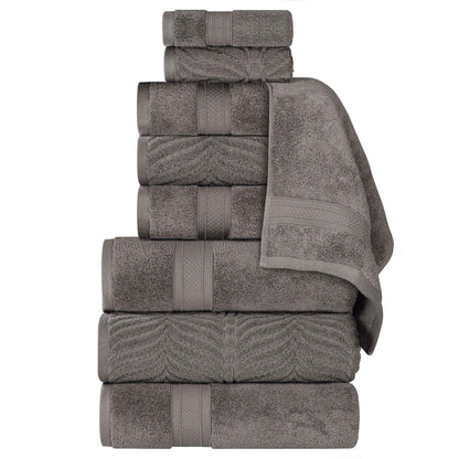 Zero Twist Cotton Solid and Jacquard Elegant Chevron 9 Piece Towel Set