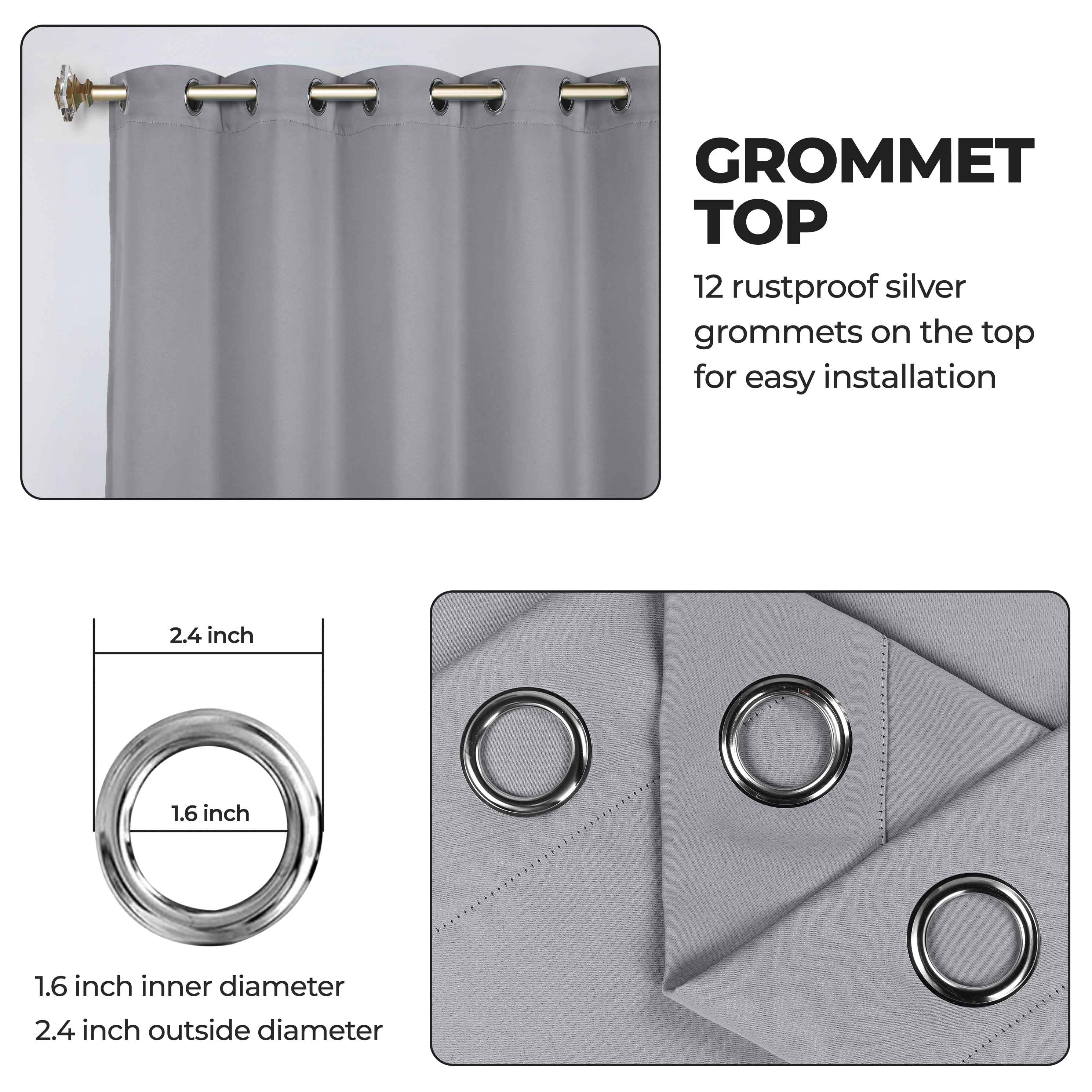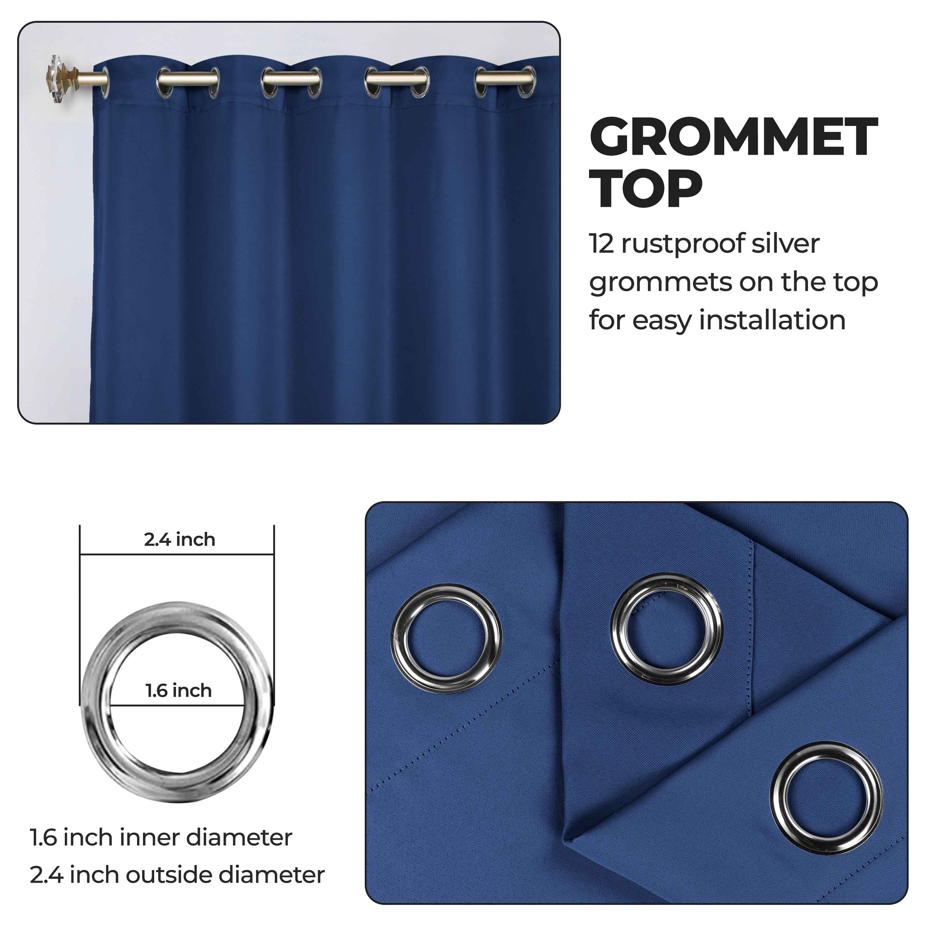 - Additional Features: Blocks up to 70-80% sunlight and UV rays, helps reduce noise, and provides optimal privacy. Energy efficient and thermal insulating; Reduces room heat and cold loss through window to maintain cozy room temperature. Stainless steel grommet header.