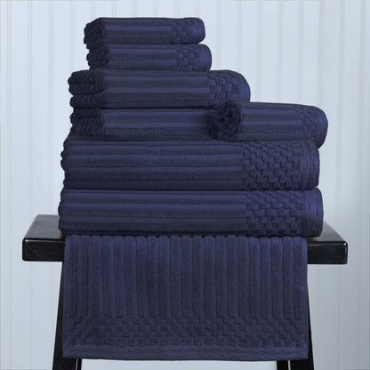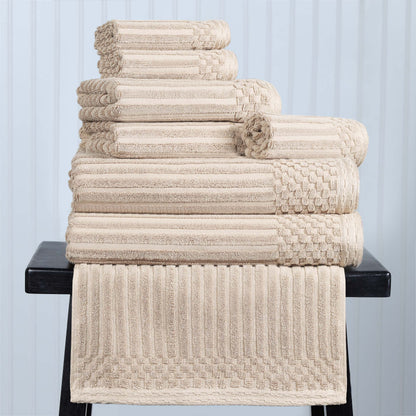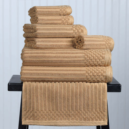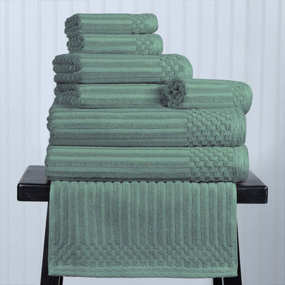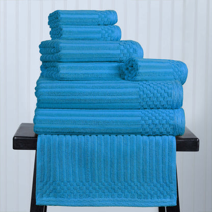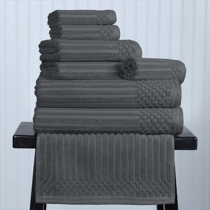 Cotton Ribbed Textured Medium Weight 8-Piece Towel Set