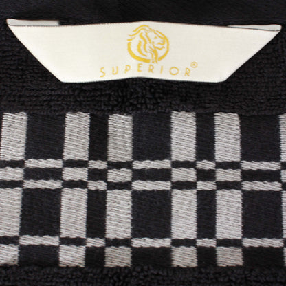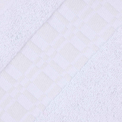 - Design Details: Each solid towel displays a decorative geometric dobby border.
