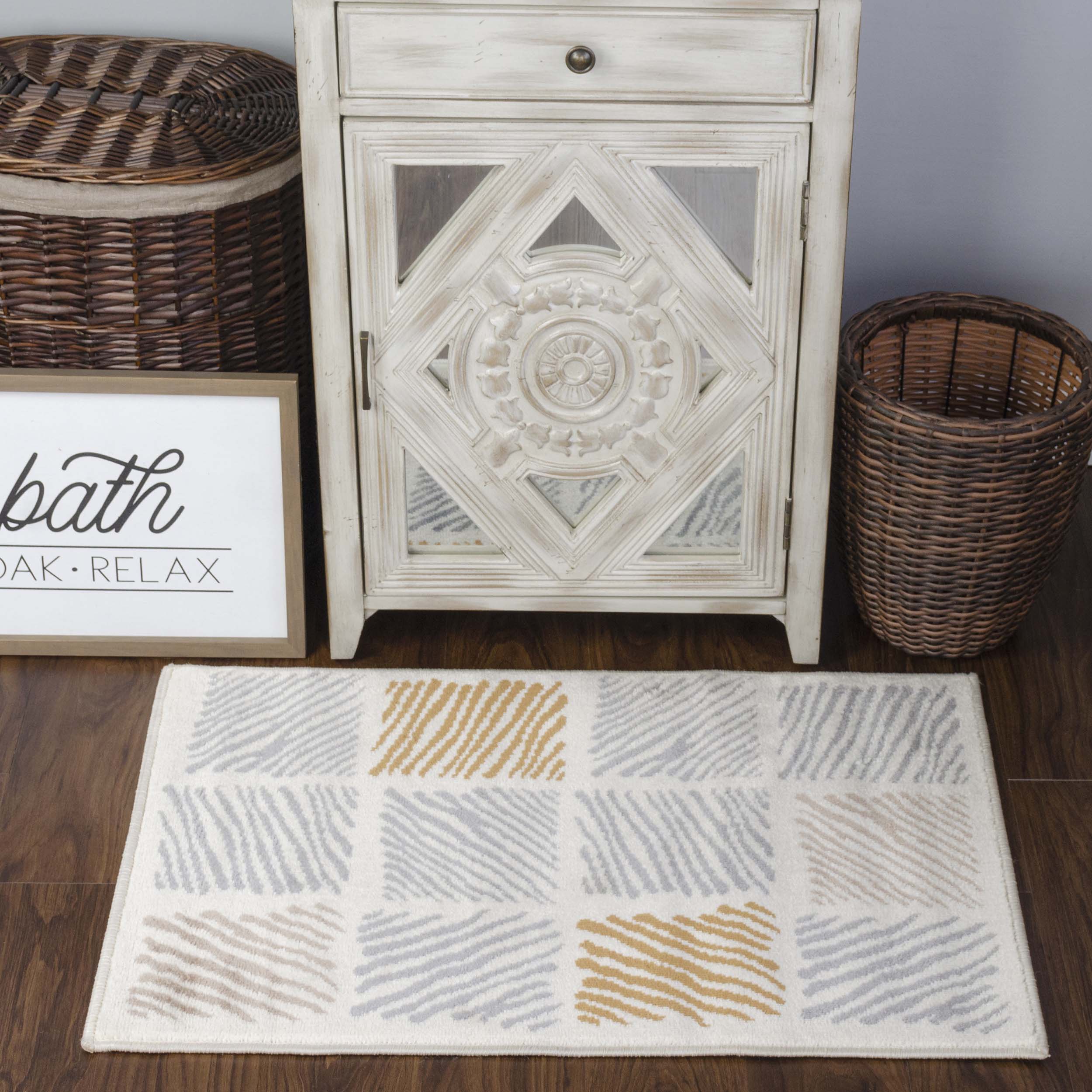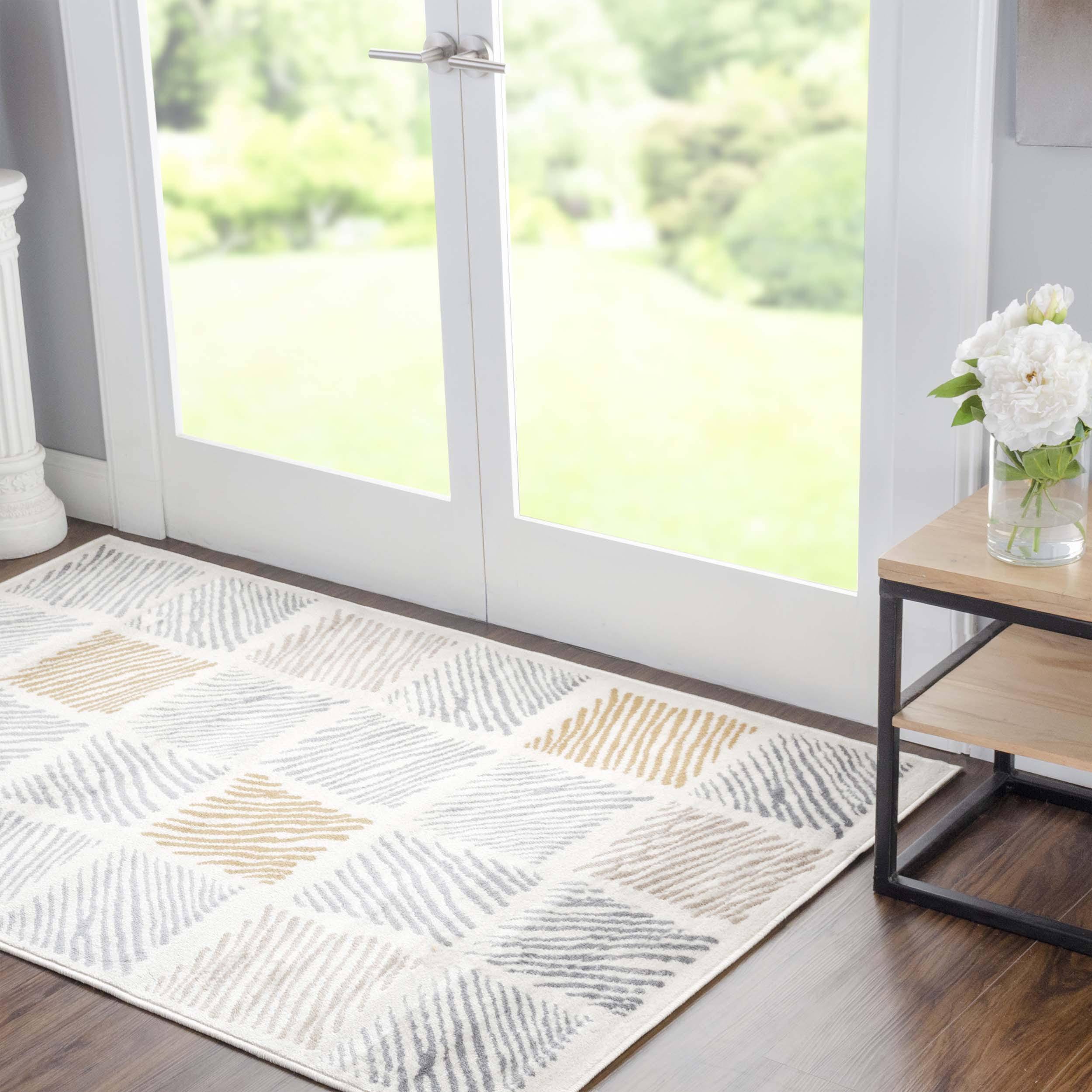 Keep your floor properly covered while infusing a casual yet modern aesthetic into your space with the Lysandra Indoor Area Rug. The wide variety of rectangular sizes allows you to slip this contemporary piece into any room or hallway. This rug showcases a repeating geometric pattern over a Bone background to instantly transform any living room, dining room, playroom, or entryway. The 100% Polypropylene base and well-made jute backing are tough enough for even the most heavily frequented areas of your home. Lysandra boasts a 0.31” rug thickness (8mm) to create a soft feeling underfoot that is ideal for everyday use.