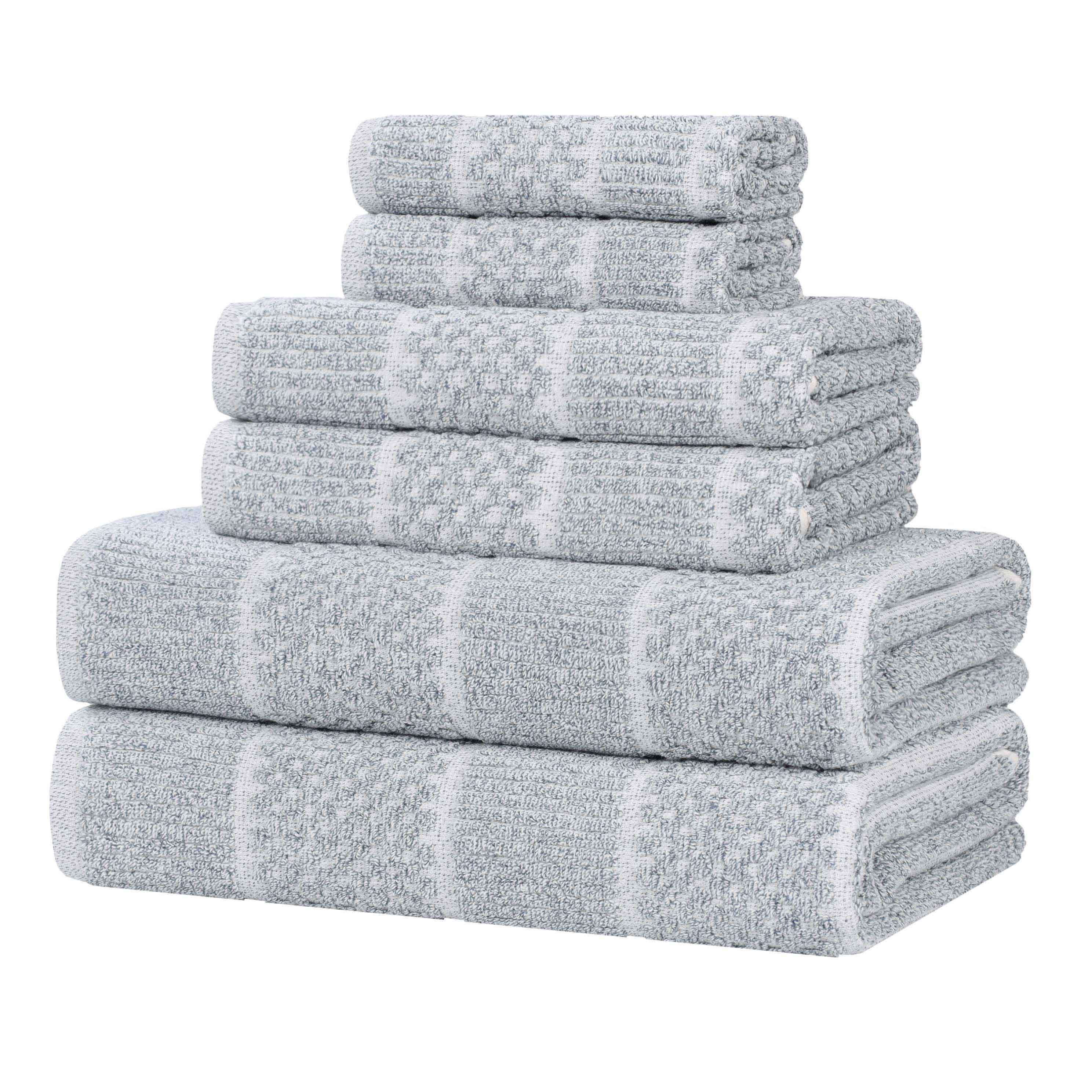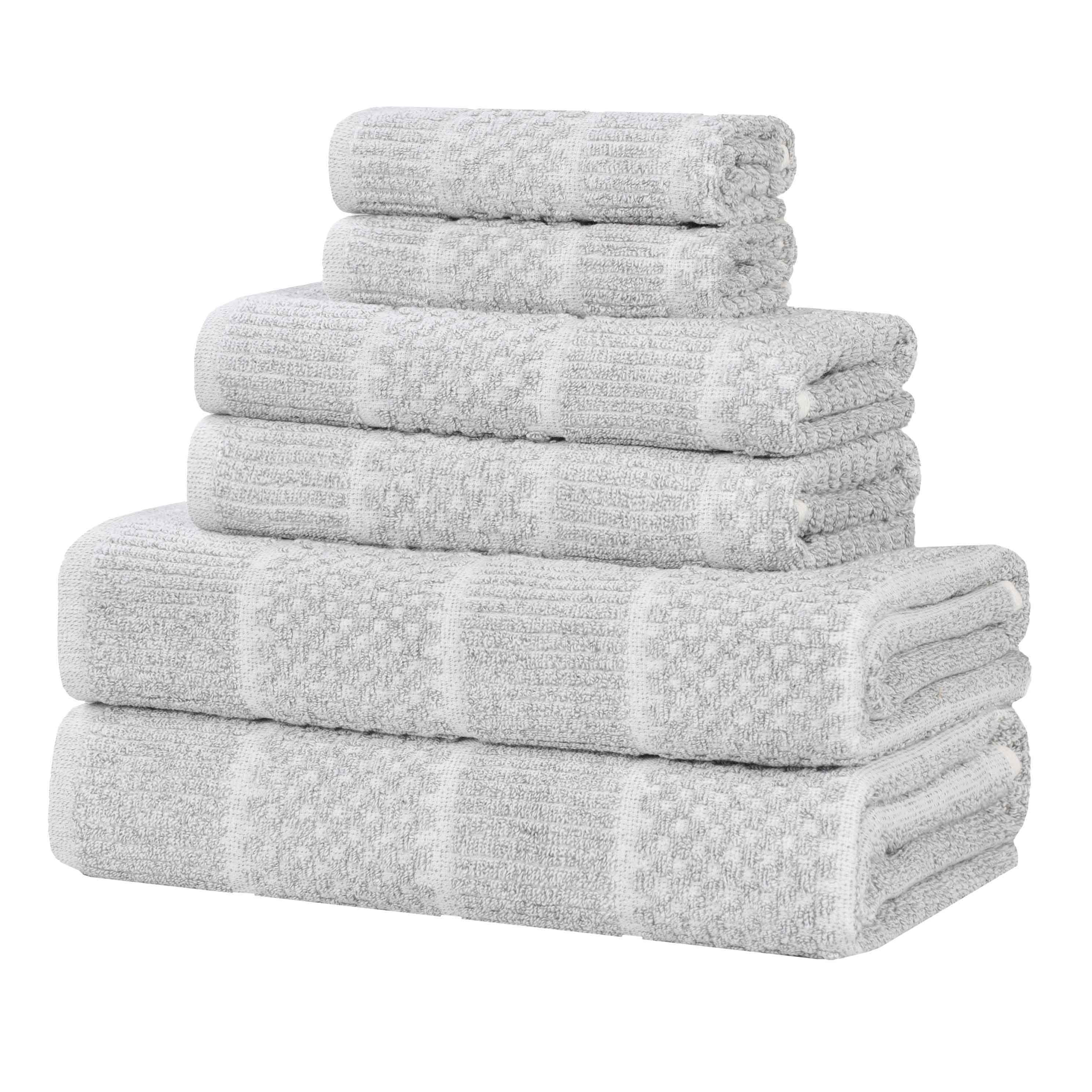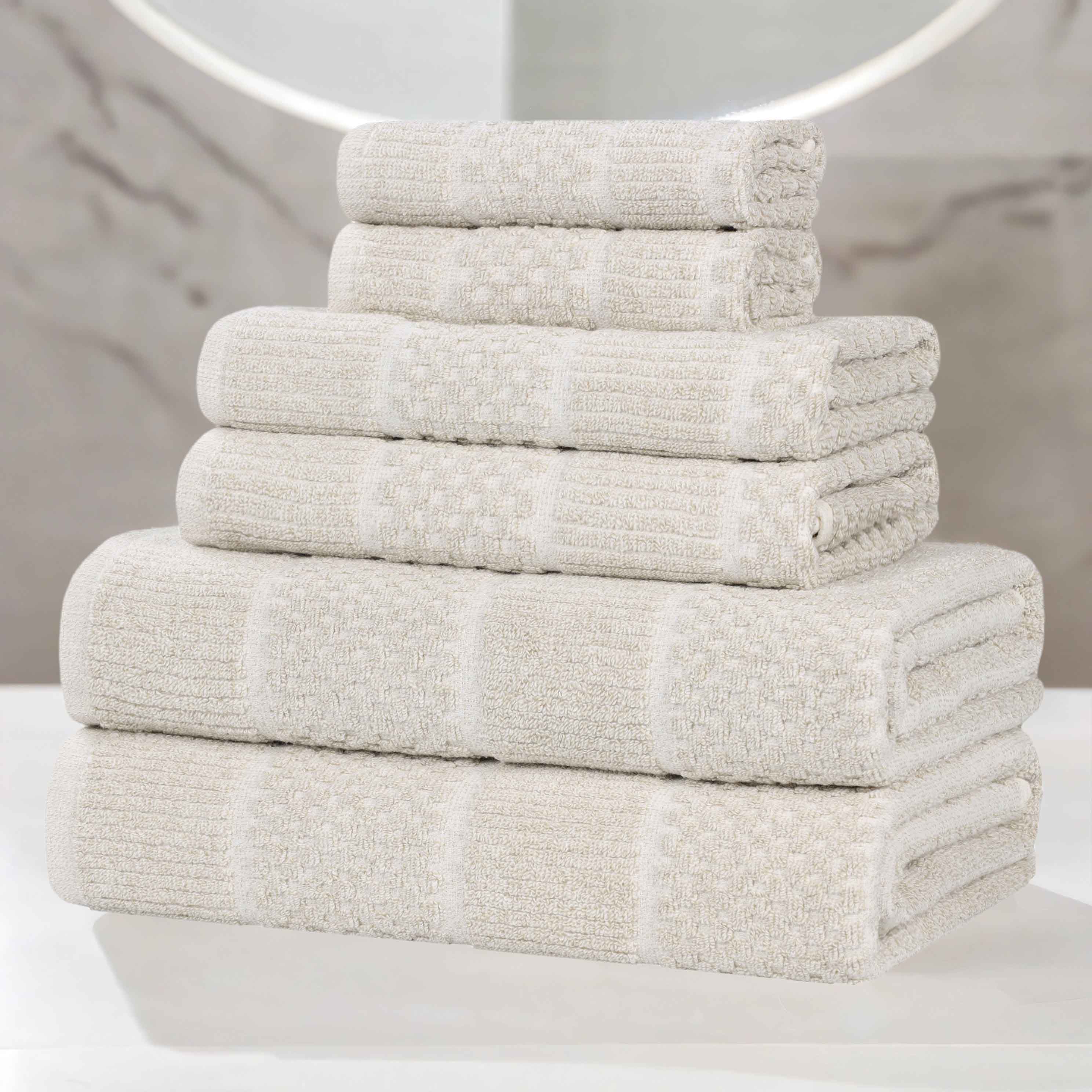 Naples Cotton Blend Medium Weight Checkered & Ribbed 6 Piece Towel Set