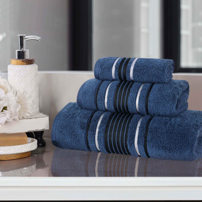 Sadie Zero Twist Cotton Elegant Floral Motif 3 Piece Solid Towel Set