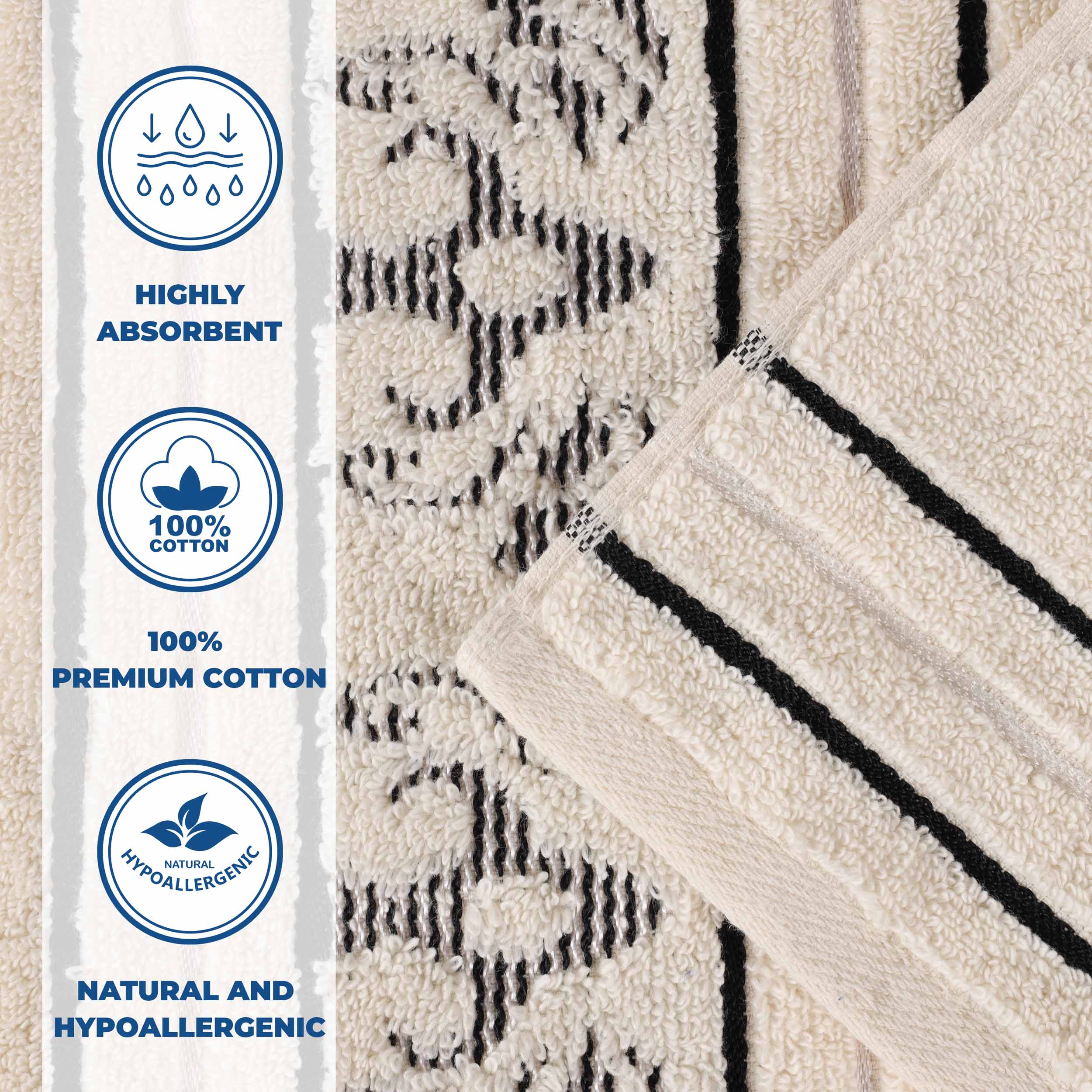 Sadie Zero Twist Cotton Solid and Jacquard Floral Hand Towel Set of 6