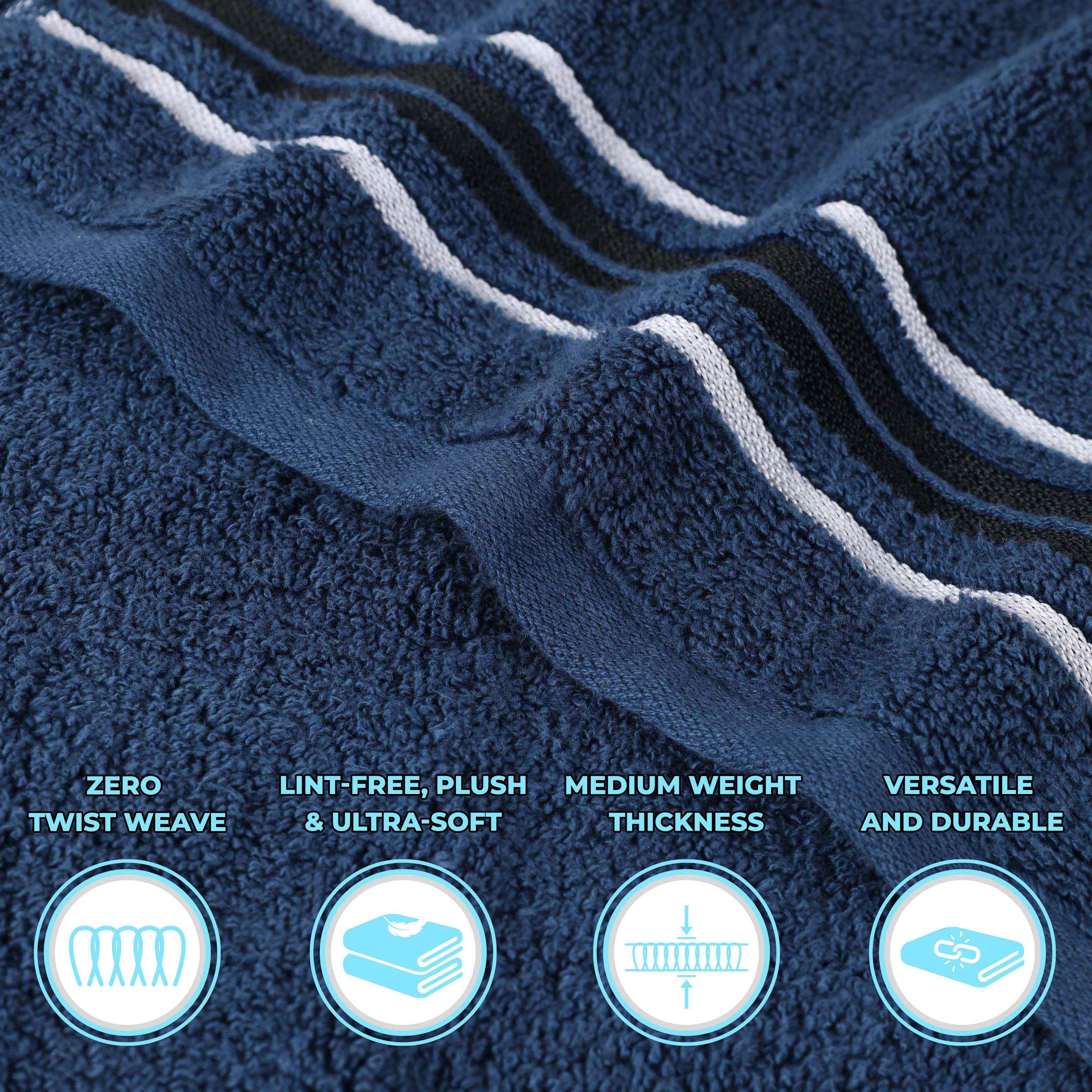 - Additional Features: Single-ply thickness for added comfort and durability Zero twist weave is plush, ultra-soft, and highly-absorbent to get you dry quickly. Each towel boasts impressive absorbency and a soft textured luxurious feel. Attached hanging loop allows you to easily hang your towel.