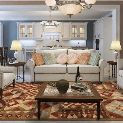 Bring rich tones and texture into your home with the Southwestern Color Block Rustic Power-Loomed Indoor Area Rug or Runner. Place this modern area rug in your living room, office, guest room, or bedroom. Crafted from quality, 100-percent Polypropylene fibers with a plush rug thickness, this beautiful piece has a cozy feel that can stand up to high-traffic areas of your home. This rug features a rustic color block pattern. This rug is a splendid accent to your Modern, Rustic, Farmhouse, and Casual home.
