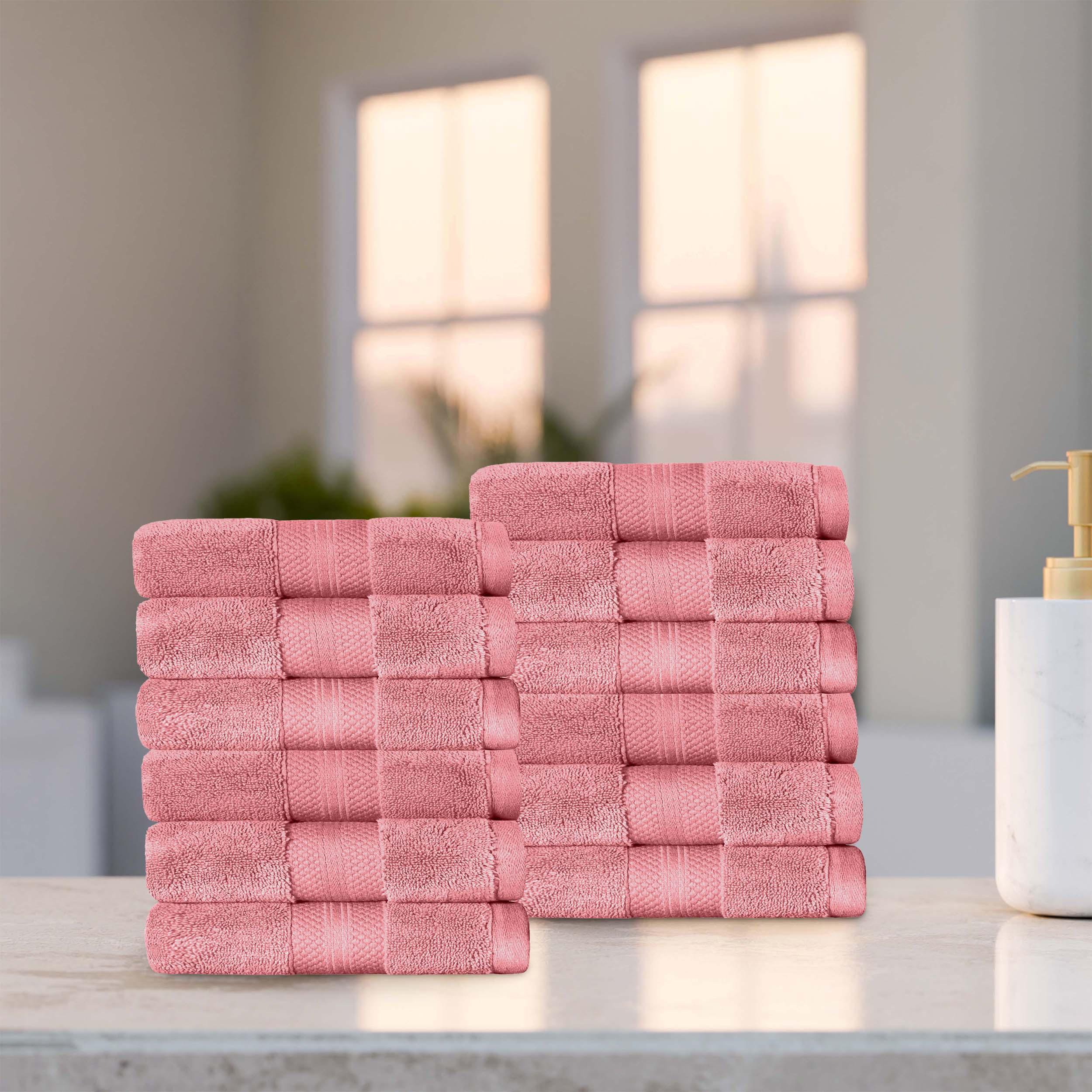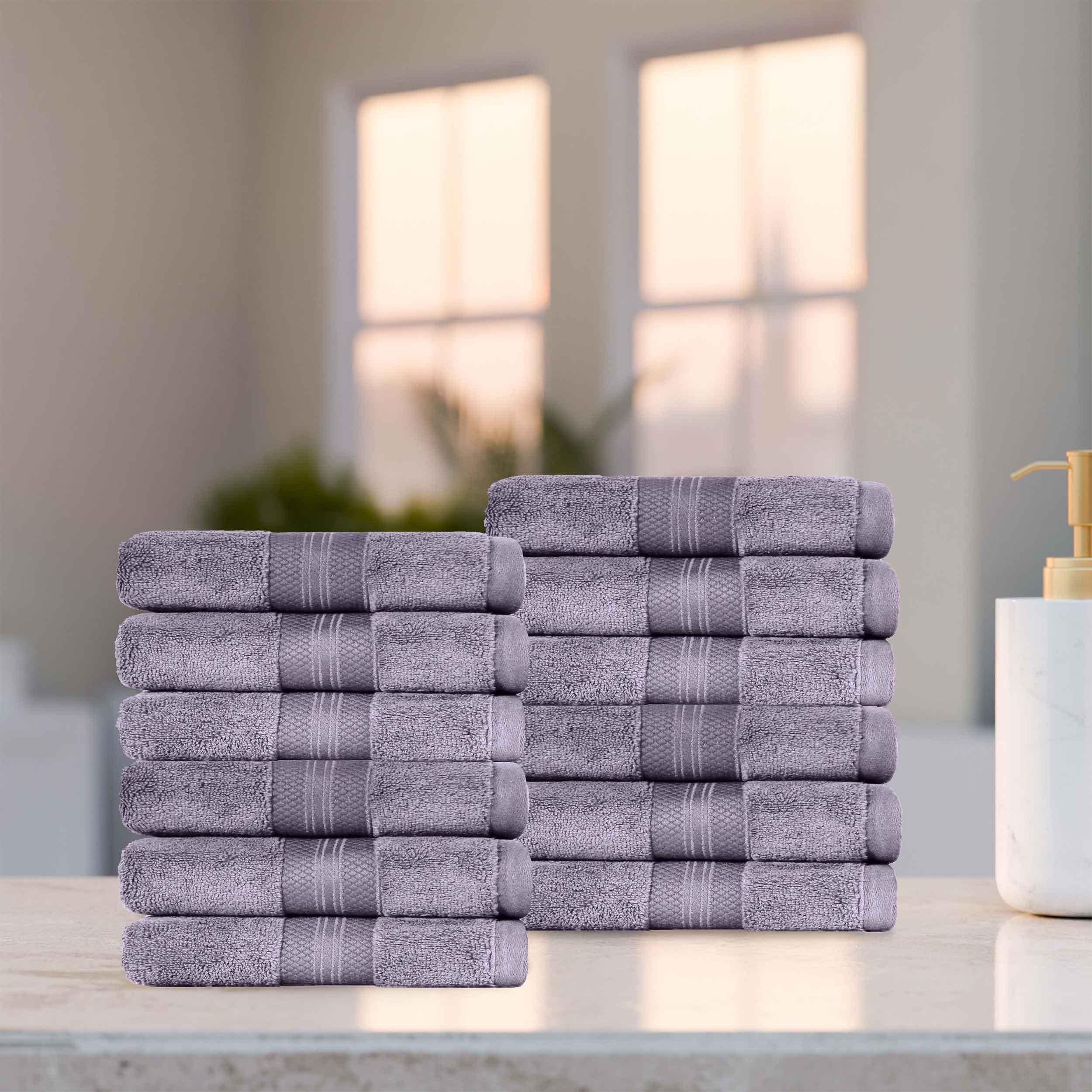 Turkish Cotton Absorbent Ultra-Plush Solid 12-Piece Face Towel Set