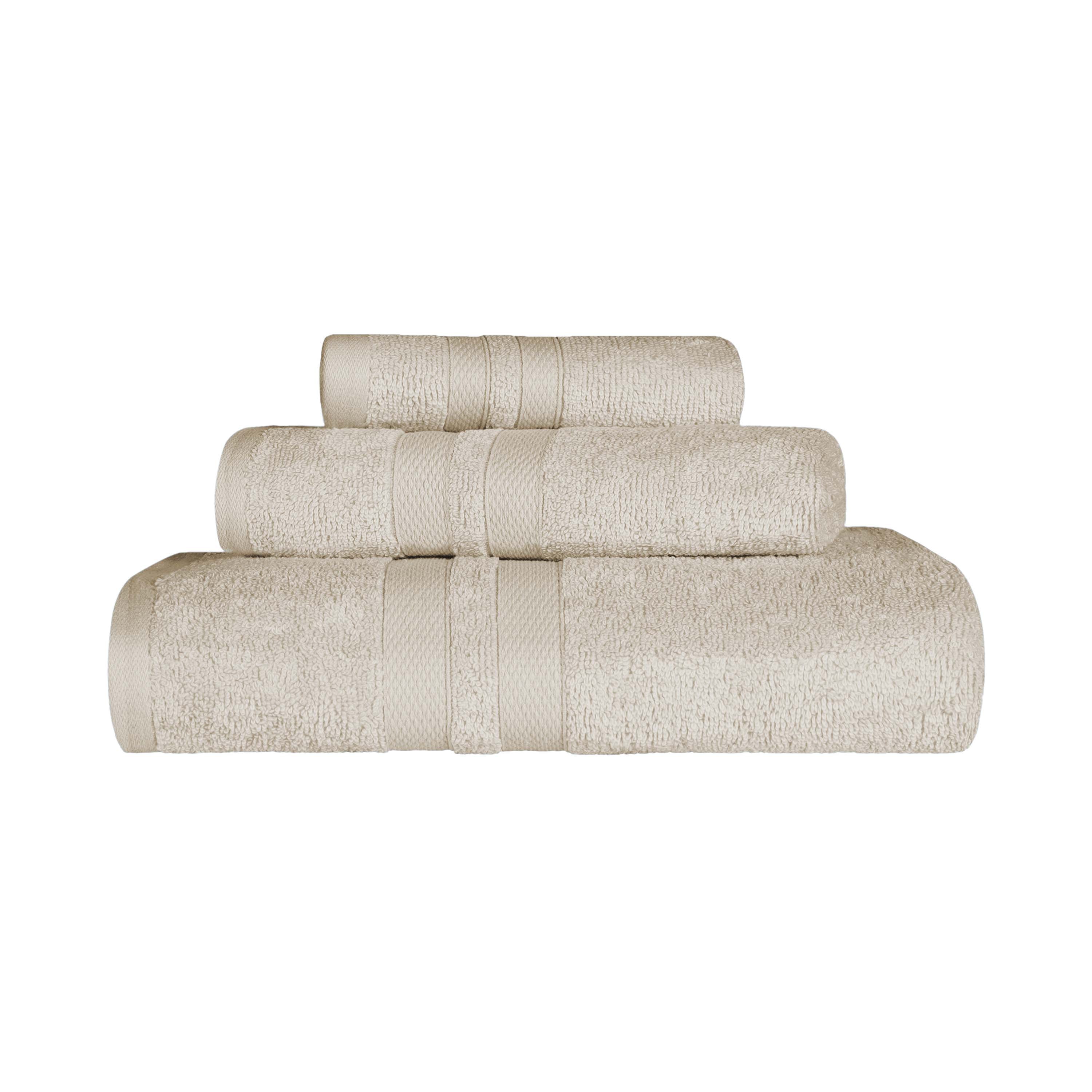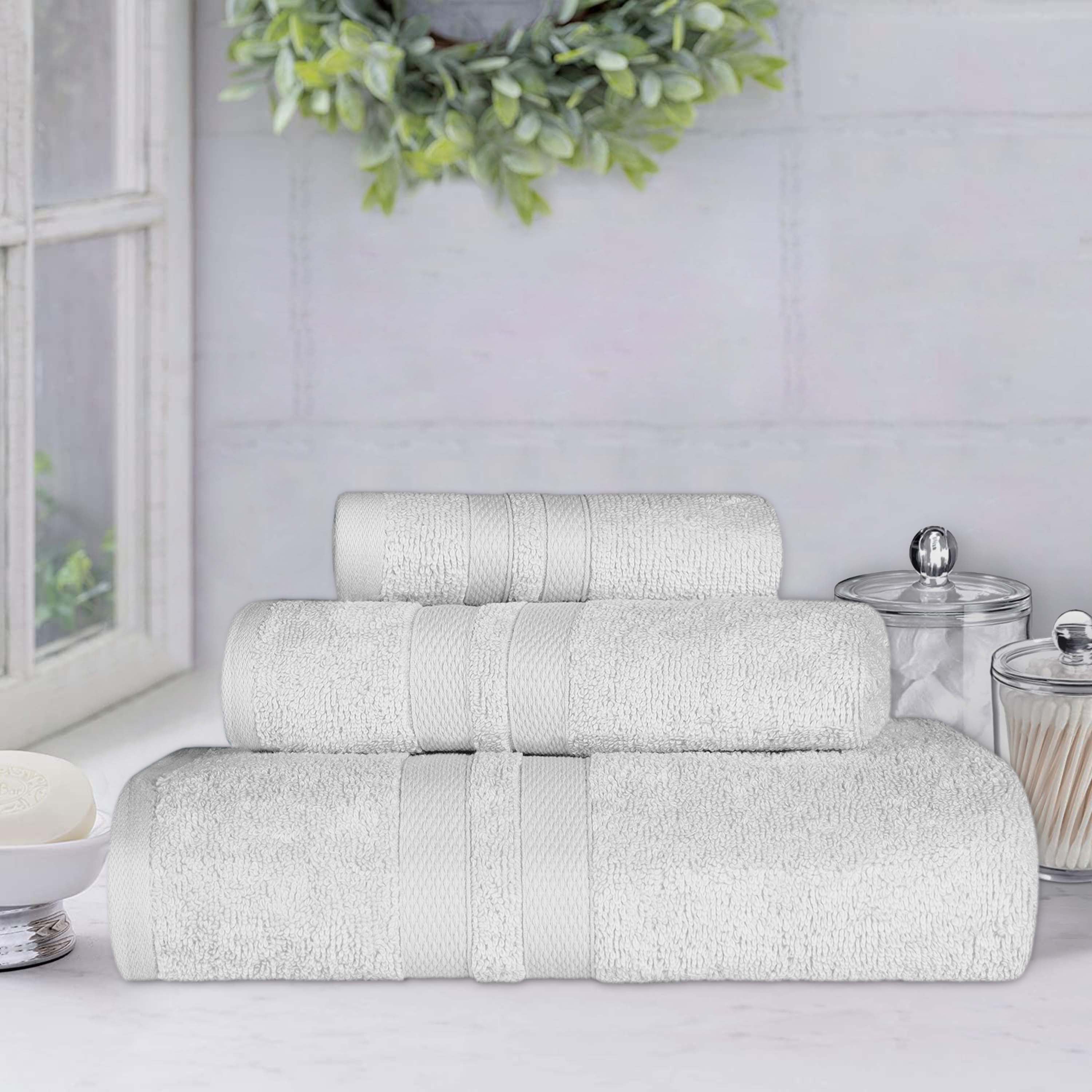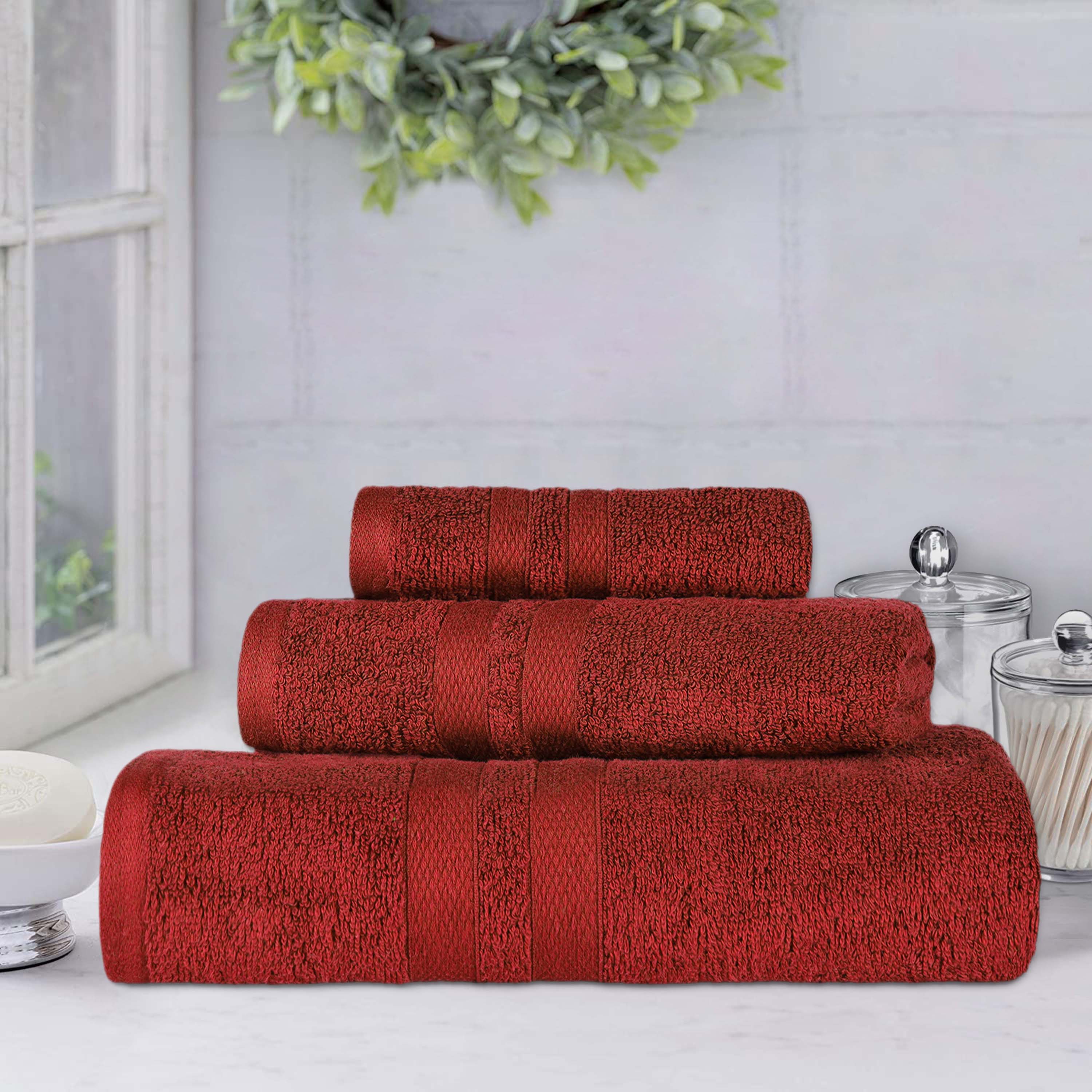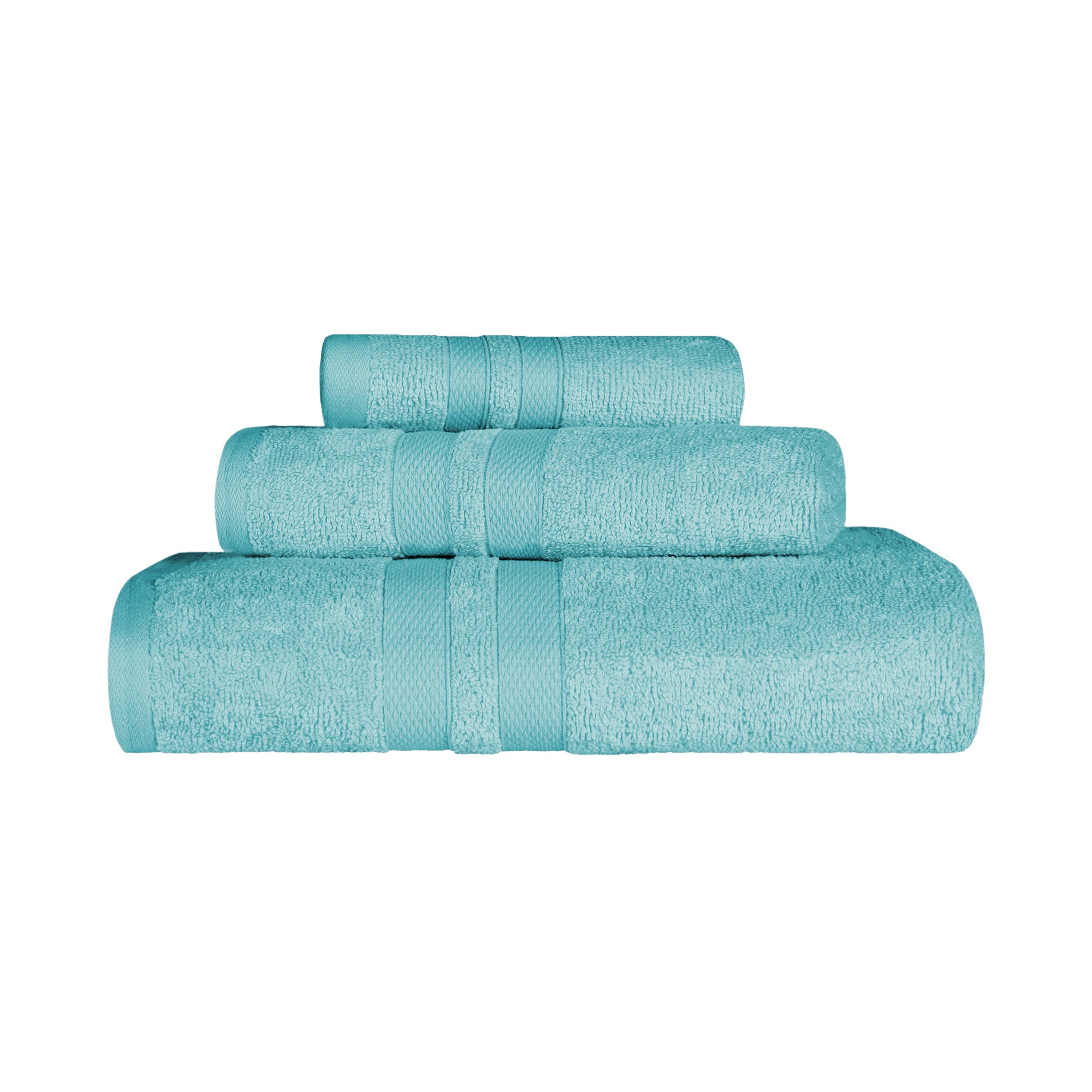 Decorating your bathroom space has never been easier with our beautifully designed Ultra Soft Cotton Absorbent Solid Assorted 3-Piece Towel Set. Crafted from premium Cotton, each set includes 1 bath towel, 1 hand towel, and 1 washcloth. Each towel promises to be soft on your skin while being absorbent to keep you warm and dry after you step out of the shower or bath. Featuring a hanging loop on every piece, this set is both practical and convenient. Available in a range of festive color options, each solid towel displays a stylish dobby border to create a spa-like retreat in any master or guest bath.