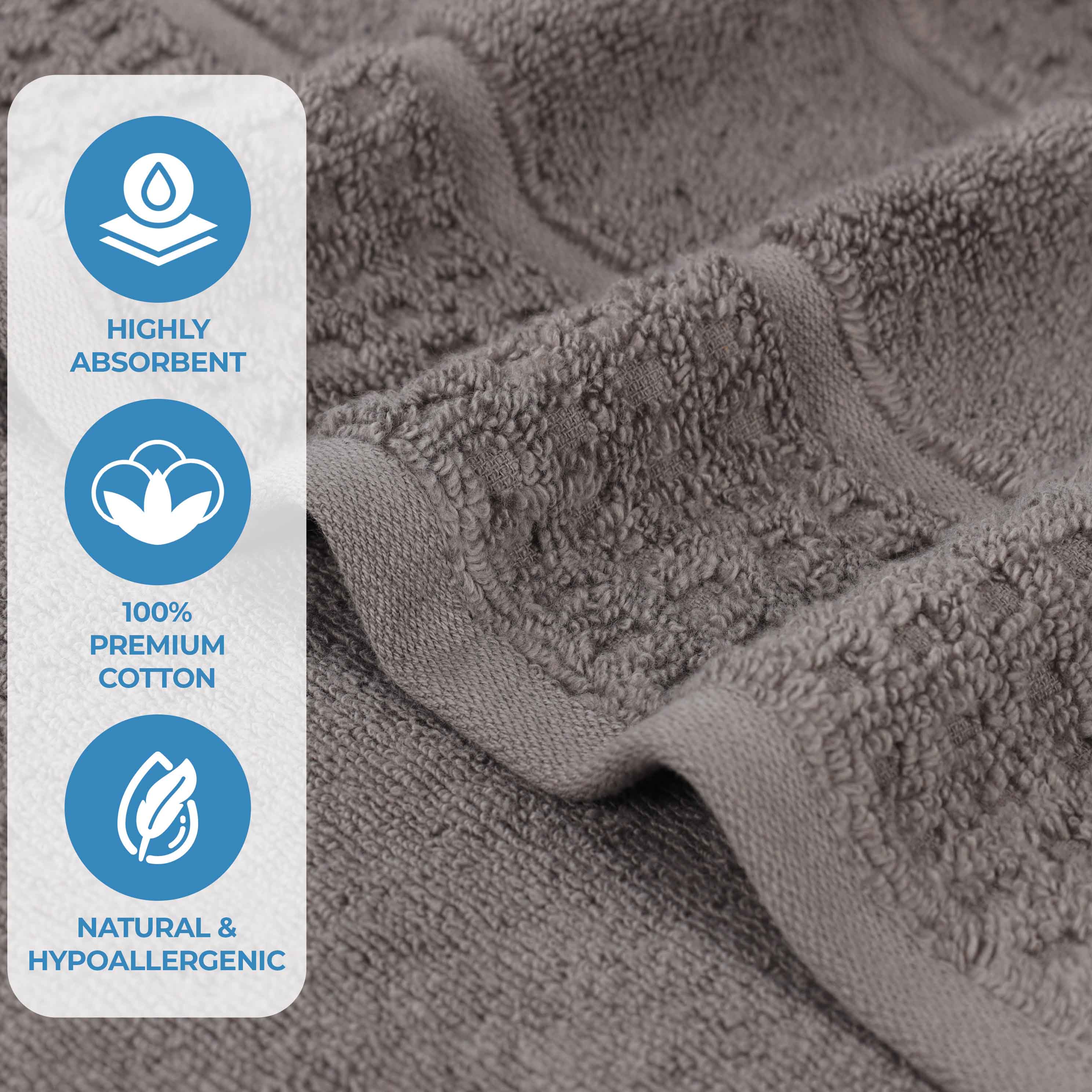 Refresh your bathroom with a harmonious blend of elegance and comfort with the Zero Twist Cotton Waffle Honeycomb Plush Soft Absorbent 12-Piece Towel Set. These ultra-plush towels are crafted from Cotton for natural softness and impressive absorbency. The zero twist technique boasts smooth loops to that offer impressive performance and longevity. Finished with secure hemmed edges to avoid fraying and a durable single-ply, these towels can withstand countless washes and last you years to come. For added style, each piece in this bundle features a textured, waffle honeycomb border and a hanging loop for effortless drying. This set includes 4 Face Towel/ Washcloths, 4 Hand Towels, and 4 Bath Towels to complete your bathroom essentials.