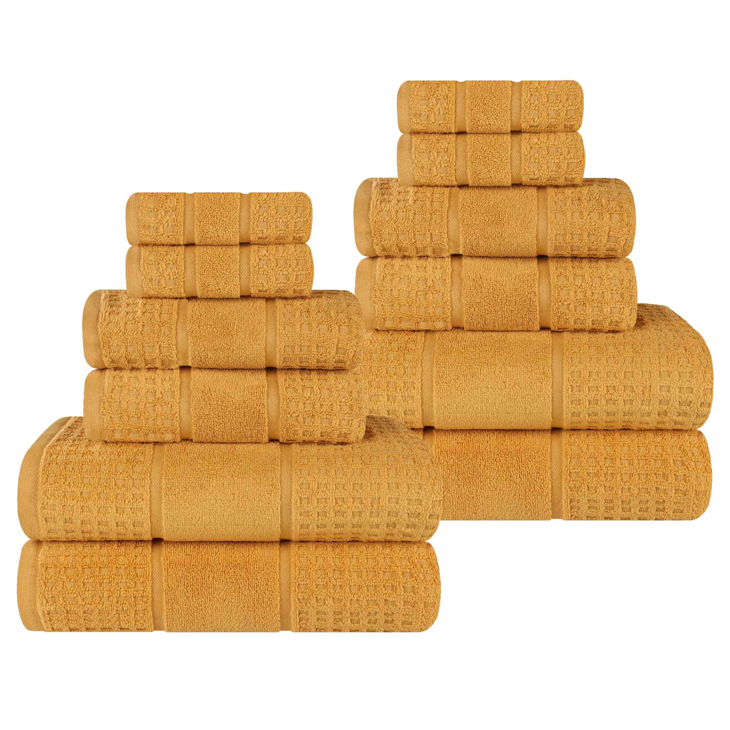 Zero Twist Cotton Waffle Honeycomb Soft Absorbent 12-Piece Towel Set